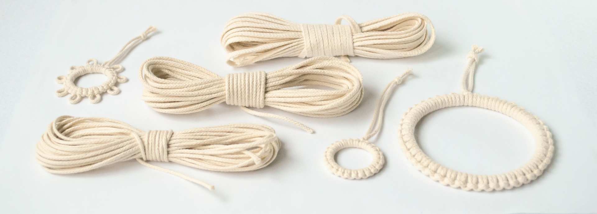 Materiali vari, cordini e fettucce, per decorare cerchi e lavorazioni a tecnica macramรจ