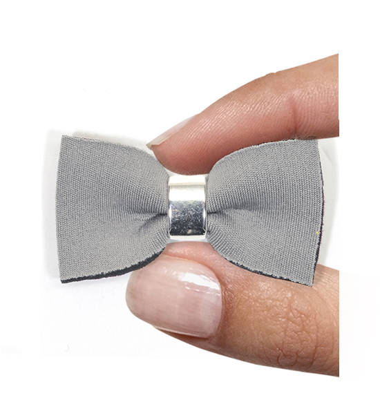 Sagoma in neoprene a forma di asola di 60×30 mm circa, spessa 3 mm di colore grigio (primo lato) e bordeaux (secondo lato) con al centro un componente per braccialetti in plastica metalizzata di alta qualità (CCB) in colore acciaio di 13×7 mm circa. Le caratteristiche principali di questo materiale sono la elasticità, la resistenza al taglio, allo schiacciamento ed all’invecchiamento atmosferico al calore. Articolo confezionato e venduto in bustine da un pezzo (1 sagoma pre-assemblata per pezzo) e/o multipli.