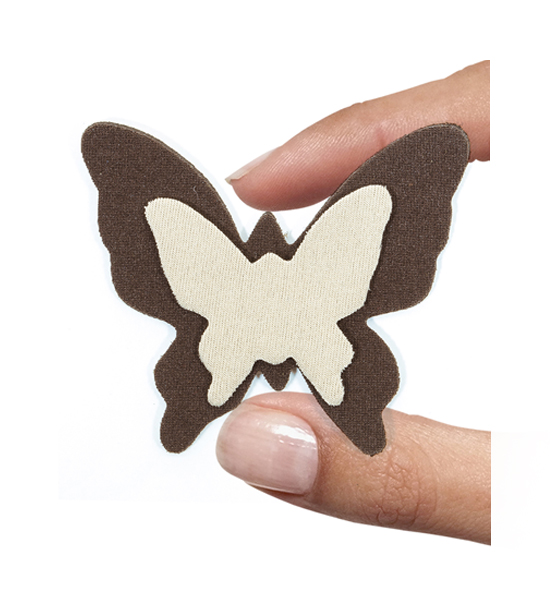 Sagoma in neoprene a forma di farfalla di 75×60 mm circa, spessa 3 mm di colore avorio (primo lato) e marrone (secondo lato). Le caratteristiche principali di questo materiale sono la elasticità, la resistenza al taglio, allo schiacciamento ed all’invecchiamento atmosferico al calore. Articolo confezionato e venduto in bustine da un pezzo (2 sagome per pezzo) e/o multipli.