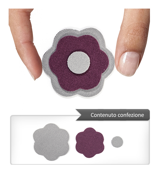 Sagoma in neoprene a forma di fiore di 55×55 mm circa, spessa 3 mm di colore grigio (primo lato) e bordeauax (secondo lato). Le caratteristiche principali di questo materiale sono la elasticità, la resistenza al taglio, allo schiacciamento ed all’invecchiamento atmosferico al calore. Articolo confezionato e venduto in bustine da un pezzo (3 sagome per pezzo) e/o multipli.