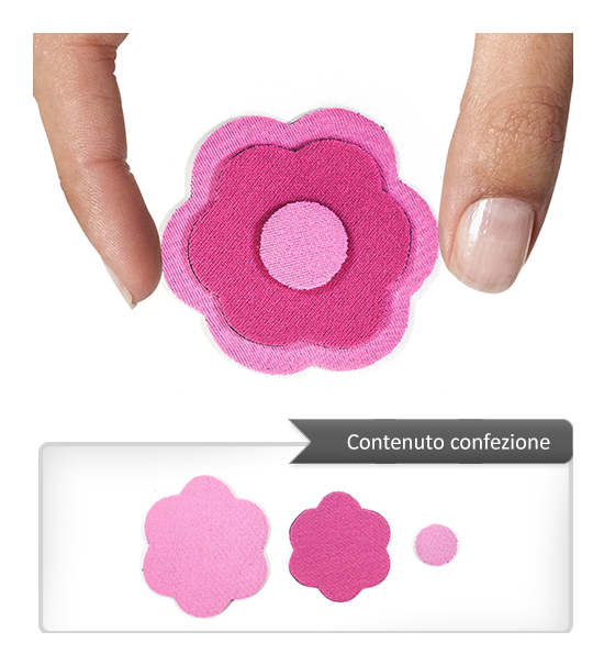Sagoma in neoprene a forma di fiore di 55×55 mm circa, spessa 3 mm di colore rosa (primo lato) e fuxia (secondo lato). Le caratteristiche principali di questo materiale sono la elasticità, la resistenza al taglio, allo schiacciamento ed all’invecchiamento atmosferico al calore. Articolo confezionato e venduto in bustine da un pezzo (3 sagome per pezzo) e/o multipli.