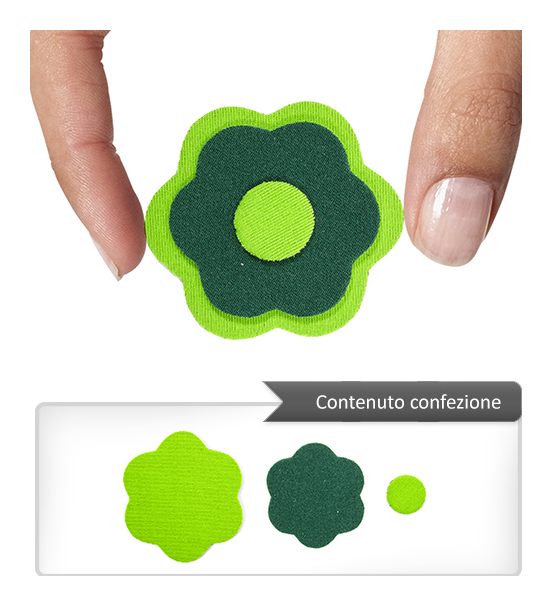 Sagoma in neoprene a forma di fiore di 55×55 mm circa, spessa 3 mm di colore verde (primo lato) e verdone (secondo lato). Le caratteristiche principali di questo materiale sono la elasticità, la resistenza al taglio, allo schiacciamento ed all’invecchiamento atmosferico al calore. Articolo confezionato e venduto in bustine da un pezzo (3 sagome per pezzo) e/o multipli.