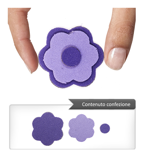 Sagoma in neoprene a forma di fiore di 55×55 mm circa, spessa 3 mm di colore viola (primo lato) e lilla (secondo lato). Le caratteristiche principali di questo materiale sono la elasticità, la resistenza al taglio, allo schiacciamento ed all’invecchiamento atmosferico al calore. Articolo confezionato e venduto in bustine da un pezzo (3 sagome per pezzo) e/o multipli.