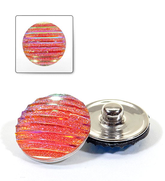 Bottone automatico decorativo in lega di metallo non ferroso e materiale acrilico A.B. (Aurora Boreale). Il prezzo non include la basetta femmina che va acquistata a parte se già non la si possiede (art. 493). Questo bottone infatti è la parte decorativa intercambiabile che va a fissarsi sulla basetta femmina… per capire meglio vedi il video tutorial “Funny”