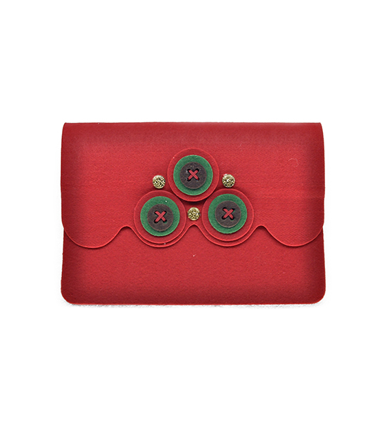 Kit fai-da-te “Creative kit” per realizzare astuccio porta tablet in feltro di colore rosso, busta contenente: sagome di feltro, matassina di filo, applicazioni varie e istruzioni pratiche.