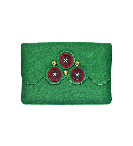 Kit fai-da-te “Creative kit” per realizzare astuccio porta tablet in feltro di colore verdone, busta contenente: sagome di feltro, matassina di filo, applicazioni varie e istruzioni pratiche.