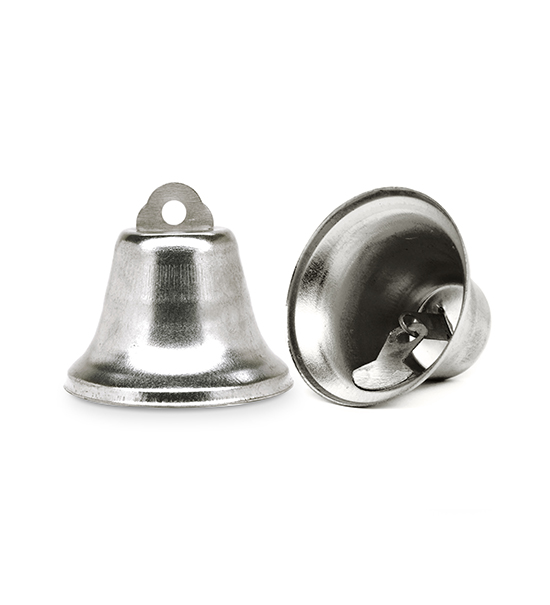Campanelle in metallo di circa 36 mm di diametro, galvanizzate di colore argento.