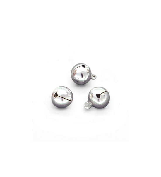 Campanellino sferico dal suono squillante, in materiale metallico (disponibile in vari colori).