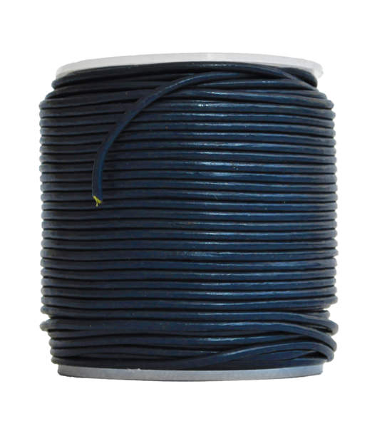 Cordino in cuoio 100% naturle dello spessore di 1.5 mm circa, non tossico, in colore blu avio. Disponibile anche in altri spessori.
