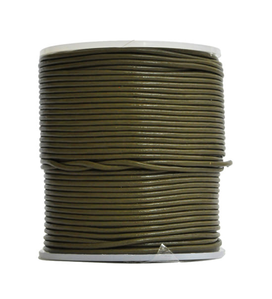 Cordino in cuoio 100% naturle dello spessore di 1.5 mm circa, non tossico, in colore verde militare. Disponibile anche in altri spessori.