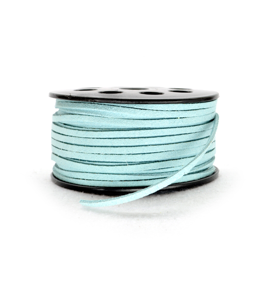 Cordoncino in scamosciato sintetico (70% nylon, 30% poliuretano), dello spessore di 3 mm circa, non tossico, di colore cielo. Disponibile anche in altri colori sulla sezione “prodotti > cordini > cordini in scamosciato del sito.