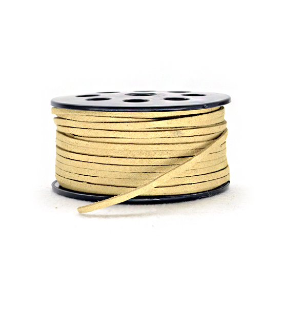 Cordoncino in scamosciato sintetico (70% nylon, 30% poliuretano), dello spessore di 3 mm circa, non tossico, di colore ecrù. Disponibile anche in altri colori sulla sezione “prodotti > cordini > cordini in scamosciato del sito.