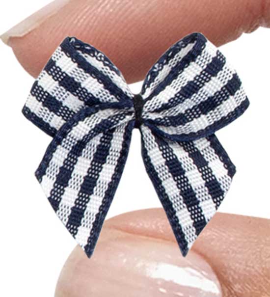 Fiocchetto a quadretti realizzato con nastrino in poliestere da mm. 10. Prezzo per confezione da 2 PEZZI