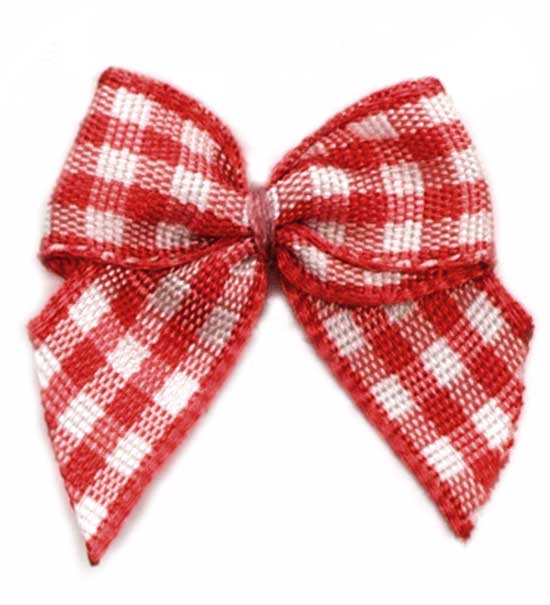 Fiocchetto a quadretti realizzato con nastrino in poliestere da mm. 10. Prezzo per confezione da 2 PEZZI
