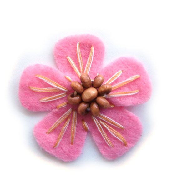 fiorellino lenci con perle legno e ricamo – col. Rosa