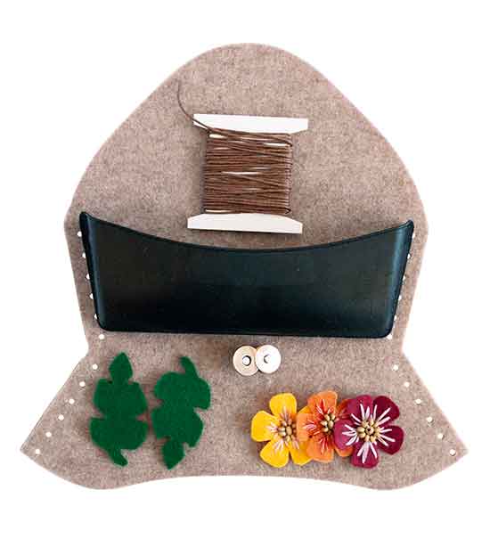 Creative Kit in feltro preforato per realizzare uno splendido astuccio porta occhiali da sole. Nella confezione troverai le sagome in feltro, il cordino per assemblarle, il bottone magnetico, l’interno rigido da inserire e il set decorativo di fiori.