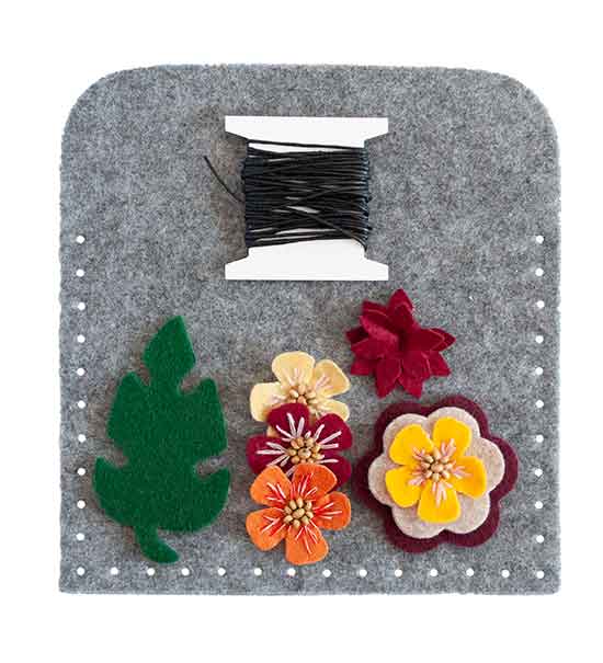 Creative Kit in feltro preforato per realizzare una splendido bustina porta occhiali. Nella confezione troverai la sagoma in feltro, il cordino per assemblarla e il set decorativo di fiori.