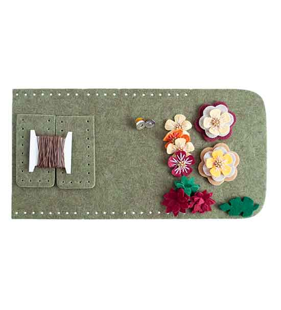 Kit fai-da-te “Creative kit” per realizzare pochette piccola in feltro, busta contente: sagome in feltro preforate, cordino per assemblaggio, set fiori decorativi e bottone magnetico.