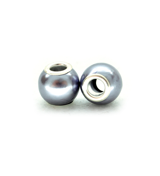 Perla ciambella pastello in materiale acrilico, forma tonda di dimensioni di 10×12 mm, con largo foro centrale di 5 mm e terminali in metallo.