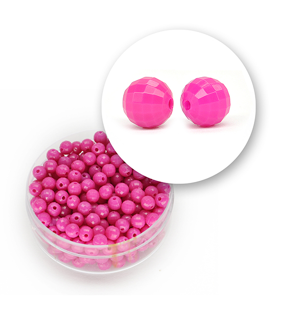 Perle in materiale acrilico con superficie sfaccettata, diametro esterno di 4 mm e foro di 1 mm circa.