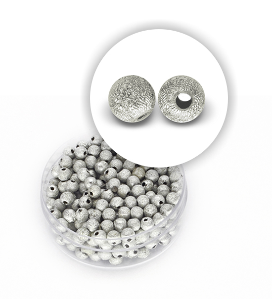 Perle “stagnole” in plastica metallizzata di colore argento, diametro di 4 mm.