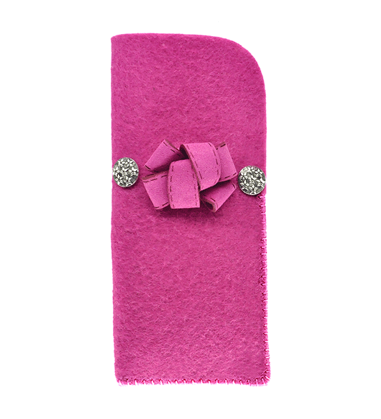 Kit fai-da-te “Creative kit” per realizzare astuccio portaocchiali in feltro di colore fuxia, busta contente: sagoma di feltro base, matassina di filo, applicazioni varie e istruzioni pratiche.