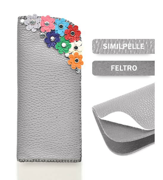 Kit fai-da-te “Creative kit” per realizzare astuccio portaocchiali in similpelle e feltro di colore grigio chiaro, busta contente: sagoma di feltro base, sagoma di similpelle base, matassina di filo, applicazioni varie.